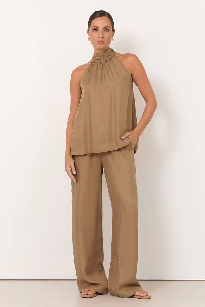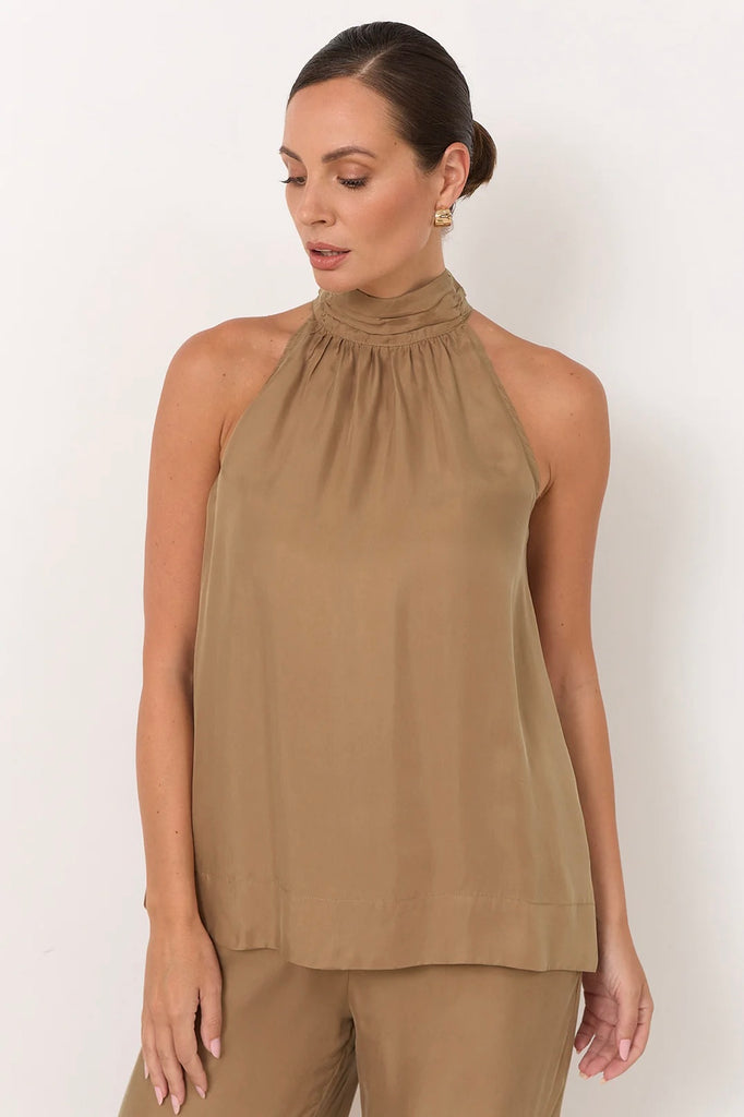 Kendra High Neck Cupro Top - Mocha